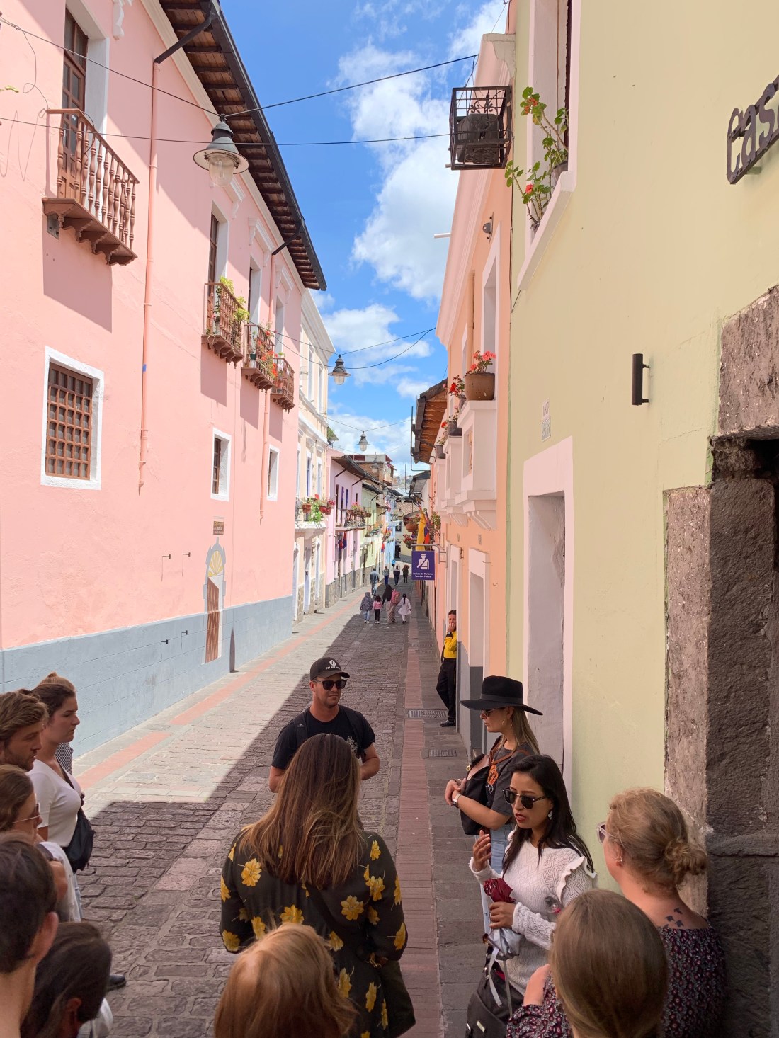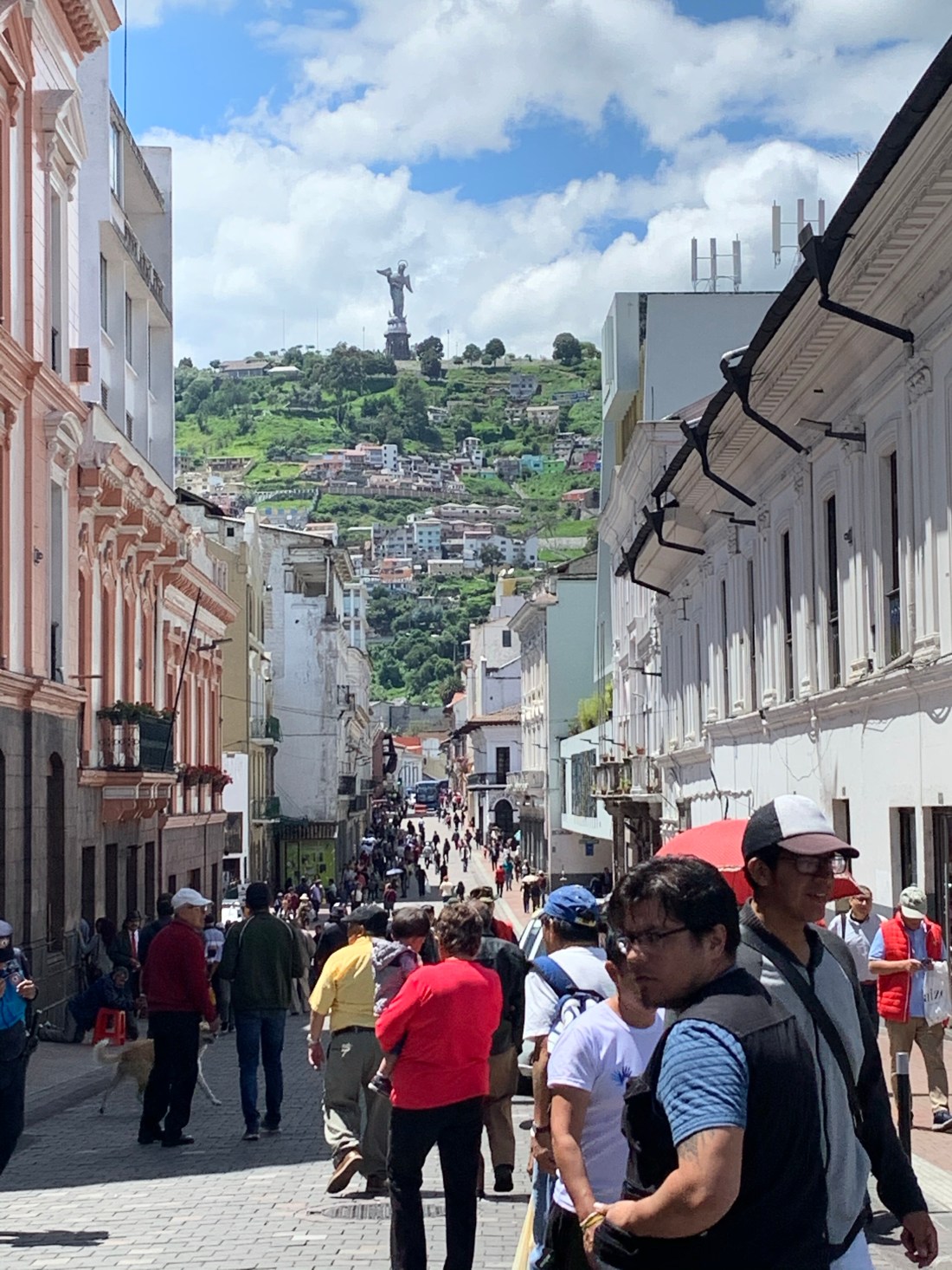 That said, crime must be a huge problem. There are police officers and security people everywhere, on street corners, at our cafe & restaurants, at buildings. Honestly, while our wallets are secured in money belts- we feel rather safe. One day at Noon on the street in old town Quito – we were warned to protect our Iphone / because – someone would snatch it out of our hands. Greg was using his phone to check directions. 😕 from that point forward, I literally shielded the phone by where I stood.