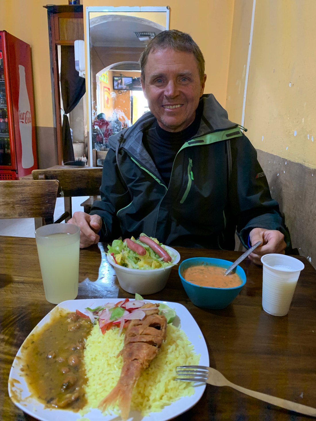 From the amazing fresh juices & sea bass found at markets to amazing ceviches and yummy pasta dishes & pizza – we never went hungry. And we frequented the bakeries & local shops and loved their offerings. And then, once in awhile, lunch missed the mark – the fried fish resting on a bed of rice…😕
