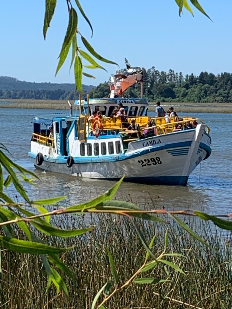 Then we took a boat tour to Punucapa nature preserve where we saw hundreds of black necked swans. We stopped in the preserve & a food festival was enjoyed with craft beers & empanadas. We also sampled roasted pork & lamb. A very Chilean experience- not any other gringos.