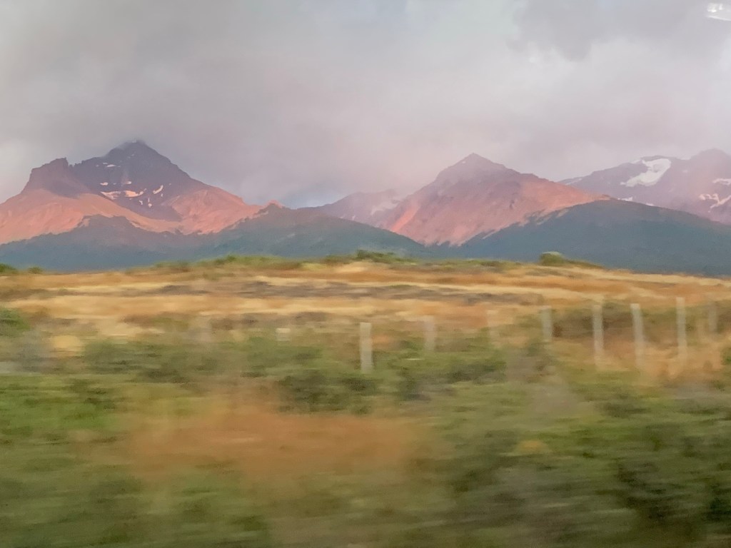 Chile is such a narrow long country that has so many natural treasures. Honestly, we were skeptical that Torres del Paine could be that much better – we are wrong! It is stunning. Here are a few photos from our bus ride to the park at dawn.