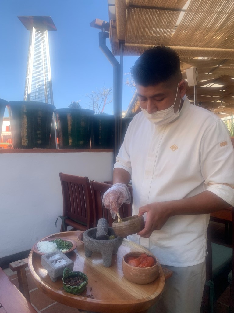 Oaxacan Salsa prepared table side caminoventure Uncategorized February 25, 2024 1 Minute Rooftop restaurant. Tomatillos, peppers, garlic, chapulines Molcajete- yum! Share this: Click to share on X (Opens in new window) X Click to share on Facebook (Opens in new window) Facebook Like Loading... Related Published by caminoventure View all posts by caminoventure Published February 25, 2024