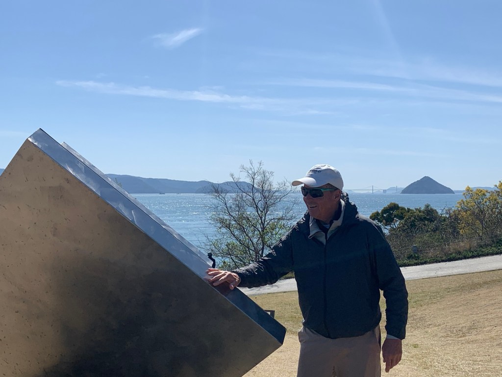 We take a day trip to Naoshima (50 seconds to catch ferry…crazy) and it is the perfect day. 60 degrees. Sunshine. Boat ride could not be better. When we get to Naoshima tske a little bus to Benesse House Museum. Great exhibits. Good lunch- amazing water views. Walk to Chichu Art Museum. Underground – cool. Displays fabulous.