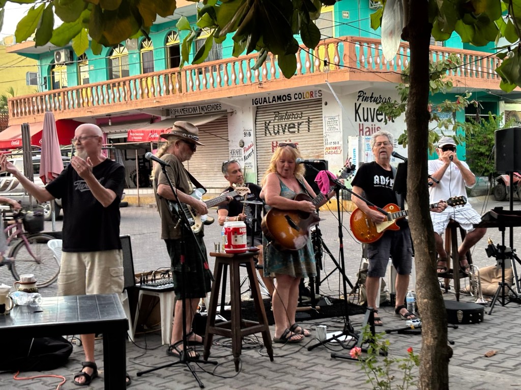 We are in a very sleepy Oceanside Pueblo. Sleepy as in not a lot of big time commercial spots and yet a vibrant local & tourist community. The cafes have lots of local & tourist customers- not always seen in popular Mexican communities. The prices are very reasonable. Clubs promote music from open mic to local musicians. It makes for a vibrant nightlife & the musicians are having a blast. There is a fishing derby bringing in lots of competitors& excitement. And, we even saw 2 whales in the local harbor. We are having fun meeting others & getting to know the community.