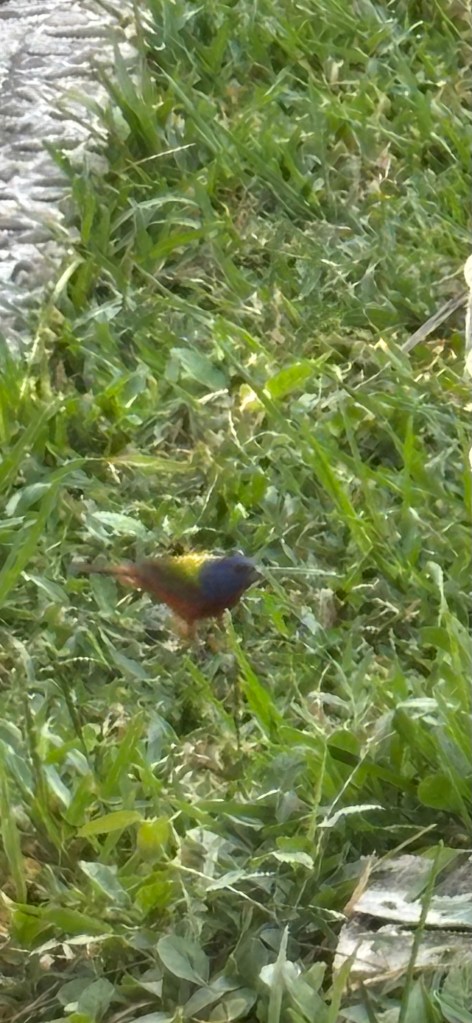 Just as we are leaving the Pacific coast, I saw this cute little red, yellow, & blue bird. Have no idea what it is and have never ever seen this species before.