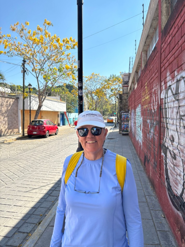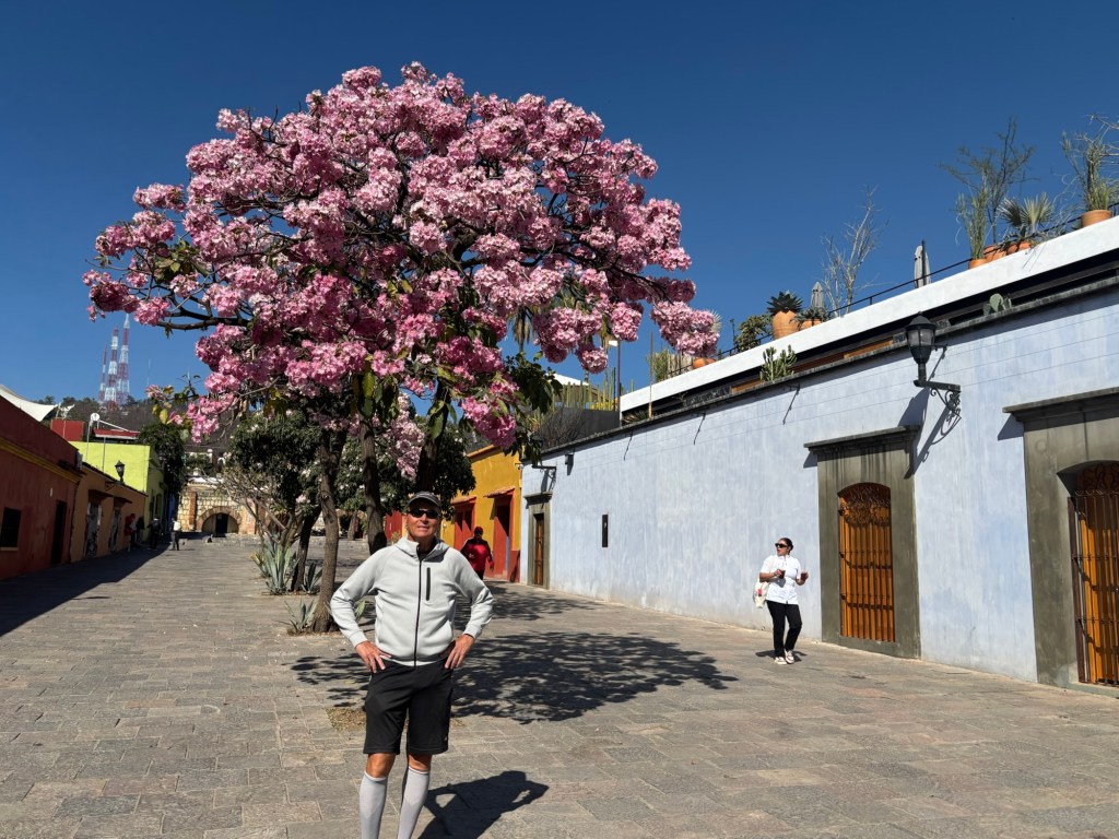 We walk a lot. About 7 miles per day. The streets are varied. Busy with tourists. Beautiful flowering trees. Old aqueducts.