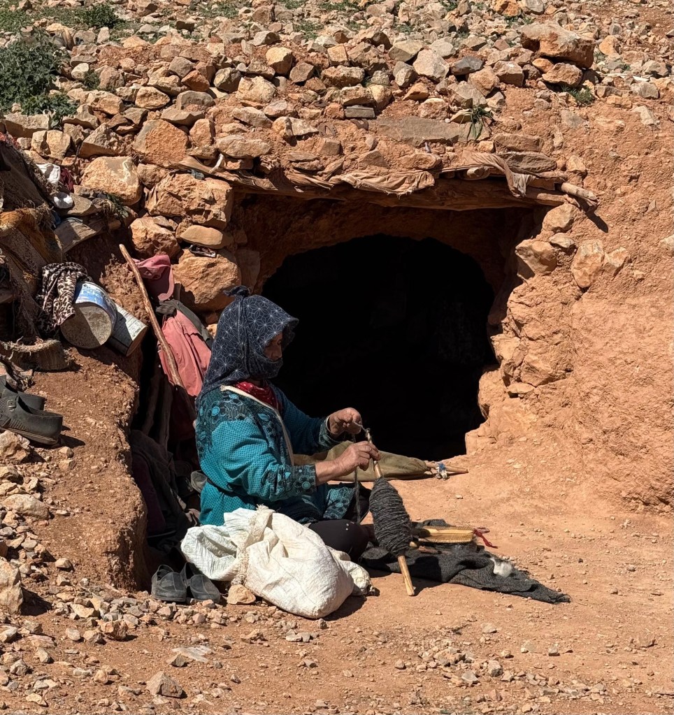 Todra Canyon is an area of Berber population. We had an amazing Berber lunch, visited their neighborhood and had a demonstration of carding wool/making yarn & weaving rugs. I never ever want to buy these rugs & I wanted to buy one ftom these talented craftspeople.