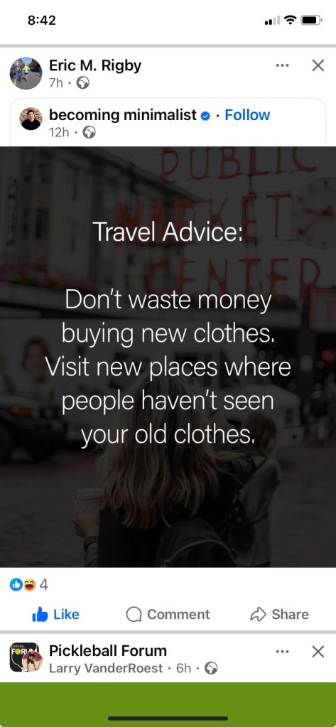 You know that G & I travel with 1 backpack & wear the same beloved clothes for months! …yes they wash easily & dry quickly😄 and a few have asked for us to detail how we do this …which we will do in a few weeks.