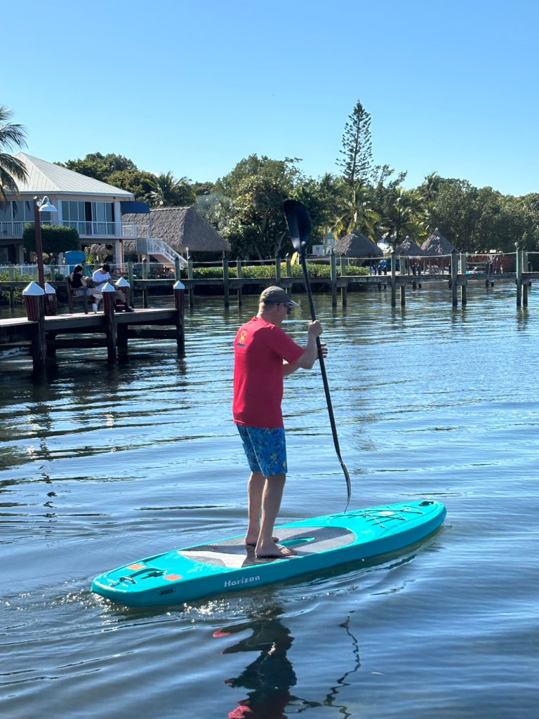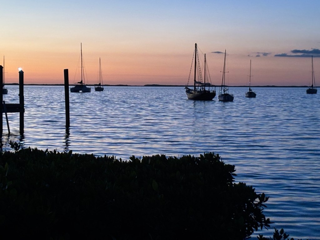 Our son Jack recently moved to Tampa for a new position. He loves it & we love it. Exploring neighborhoods & beaches has been fun. Greg has been refereeing pickleball tournaments – lots of fun. Between tournaments we have been exploring. We reconnected with my college roommate Jean Ann & her husband Doug at The Villages – fun conversations, music, pickleball, dining. Next St Augustine- our friends Heather & Mark showed us the fine points – harbor, holiday lights, charming historic old town. We caught a glimpse of Miami driving through the beachside communities of numerous high rises & so many cruise ships crazy! Spent a day wandering Coral Gables and its fun cafes, scrollable — so much fun. Next we wind our way south through stunning beachside communities of Miami. Heading towards Biscayne Bay National Park. Our national park rangers led a fabulous walk explaining the ecosystems of this treasure of an underwater park. The ribbon of a highway takes us to the Keys. Stunning natural beauty when you look past the commercial development. Sunsets spectacular. Snorkeling reefs -love it! Up close to the barracuda-exciting. Colorful fish everywhere.