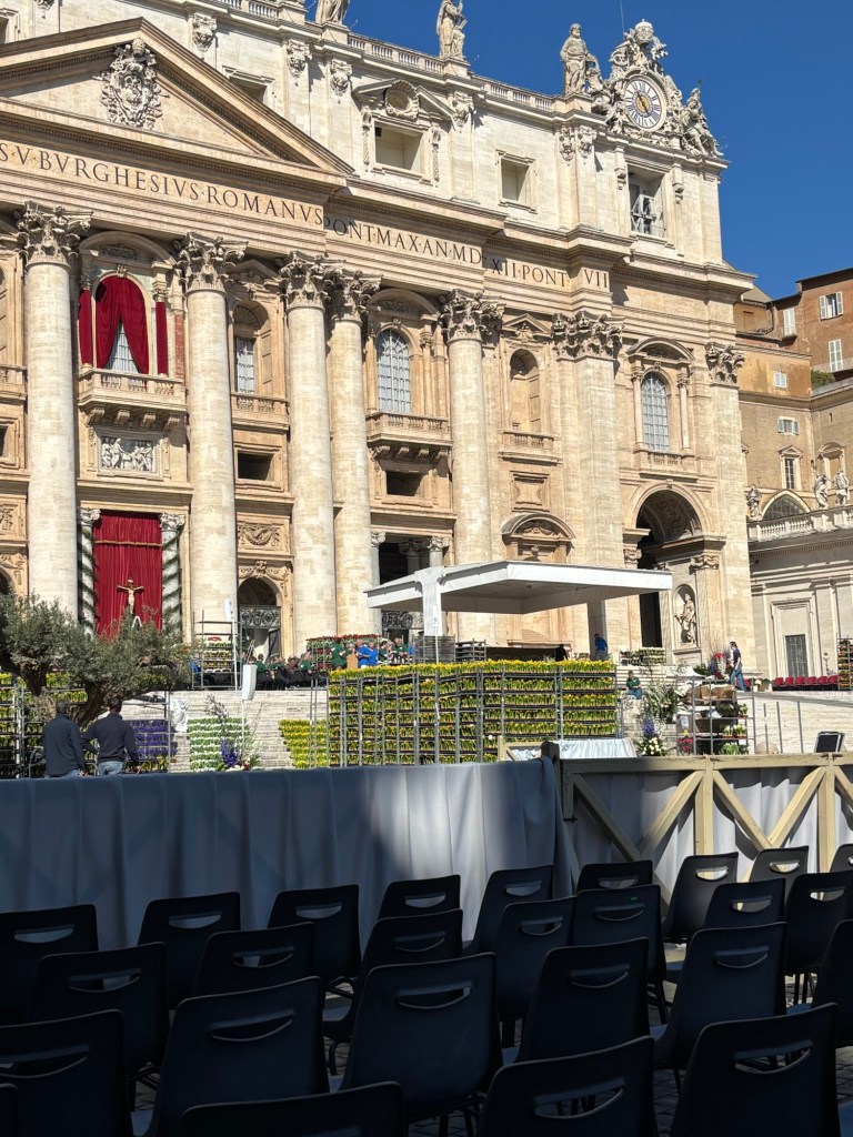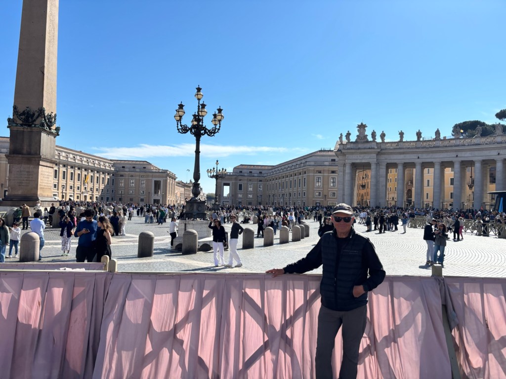 Rome – First Impressions caminoventure Uncategorized April 6, 2026 1 Minute Charming street near our hotel First glimpse of St Peter Close Closer Fav sunny day treat – cocktails at dusk They are preparing for a crowd! Share this: Share on X (Opens in new window) X Share on Facebook (Opens in new window) Facebook Like Loading... Related Published by caminoventure View all posts by caminoventure Published April 6, 2026