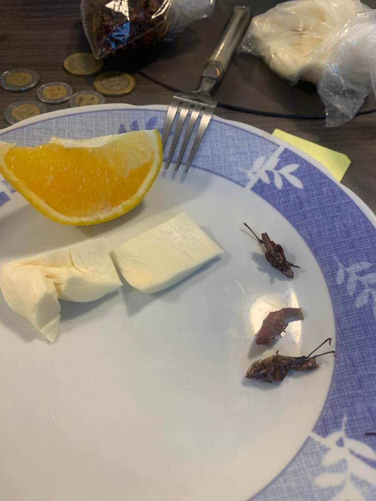 Chapulines – chili roasted grasshoppers. The common appetizer is guacamole & chapulines. Of course I ate them and I prefer a chip!