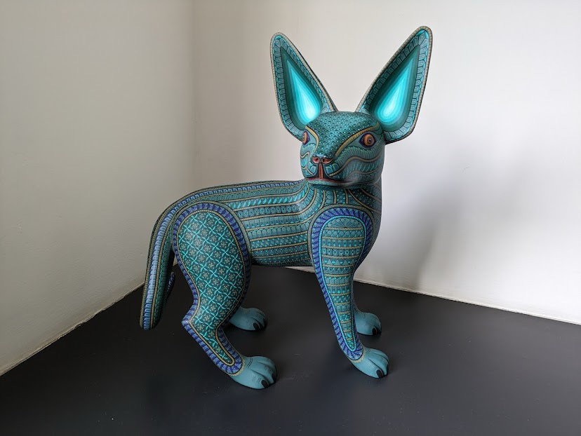 Hand painted. Detail extraordinary. Each of the painted symbols are historically significant. Chevk out the detail on this coyote.
