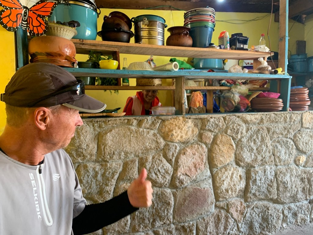 Had an amazing lunch with freshly made blue corn tortillas-check out the beautiful chef on the other side of stone wall from Greg.