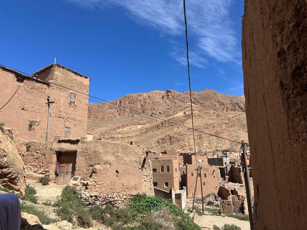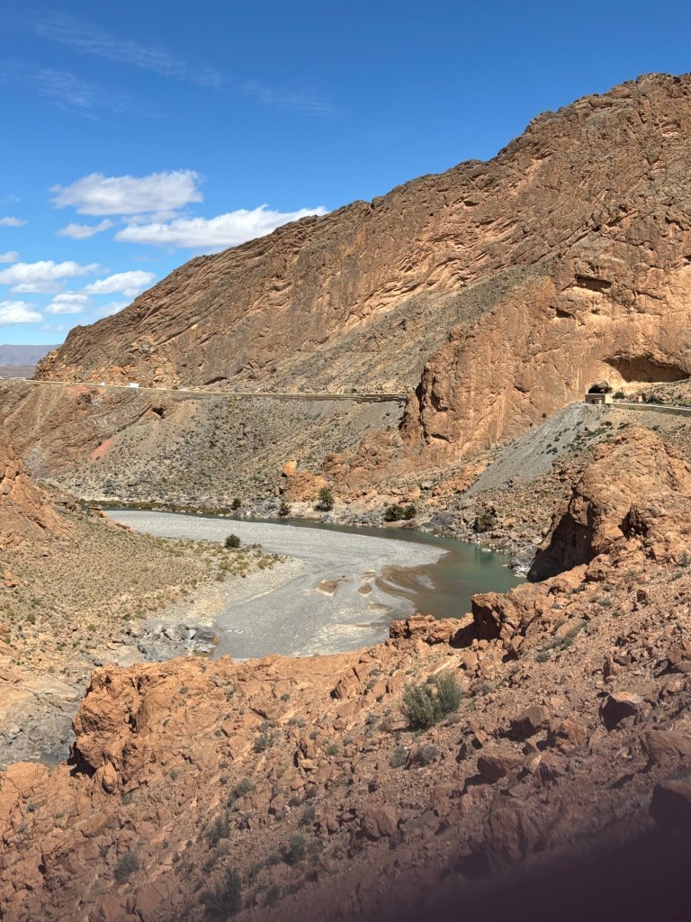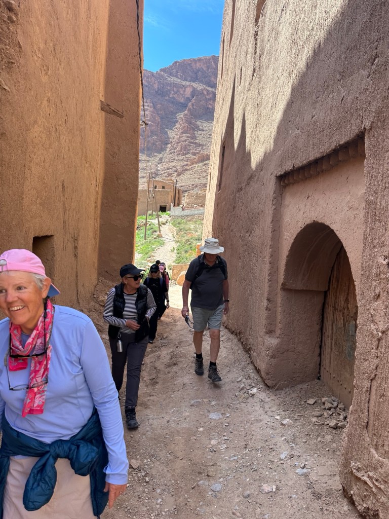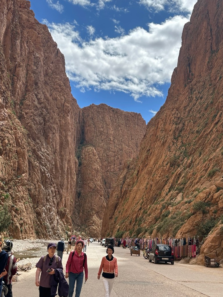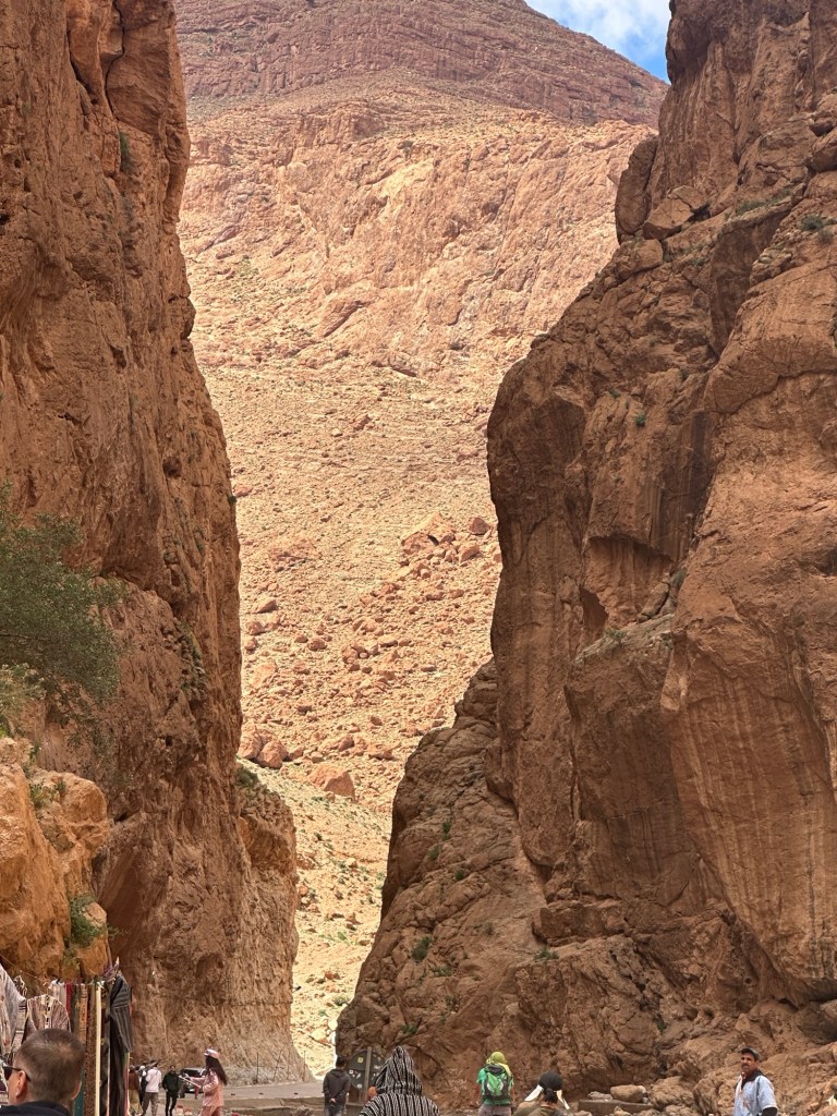 We have left the cypress forests, snow, agricultural fields/areas as we headed to the Sahara Desert & sand dune area. Yesterday we travelled from dunes to rocky- Zion NP terrain. We are in Todra Canyon. Small community with very traditional housing. Alleys are alluring. Irrigation systems have been around for over 1000 years. Almond, peach, quince, apple trees. Favs beans & more!