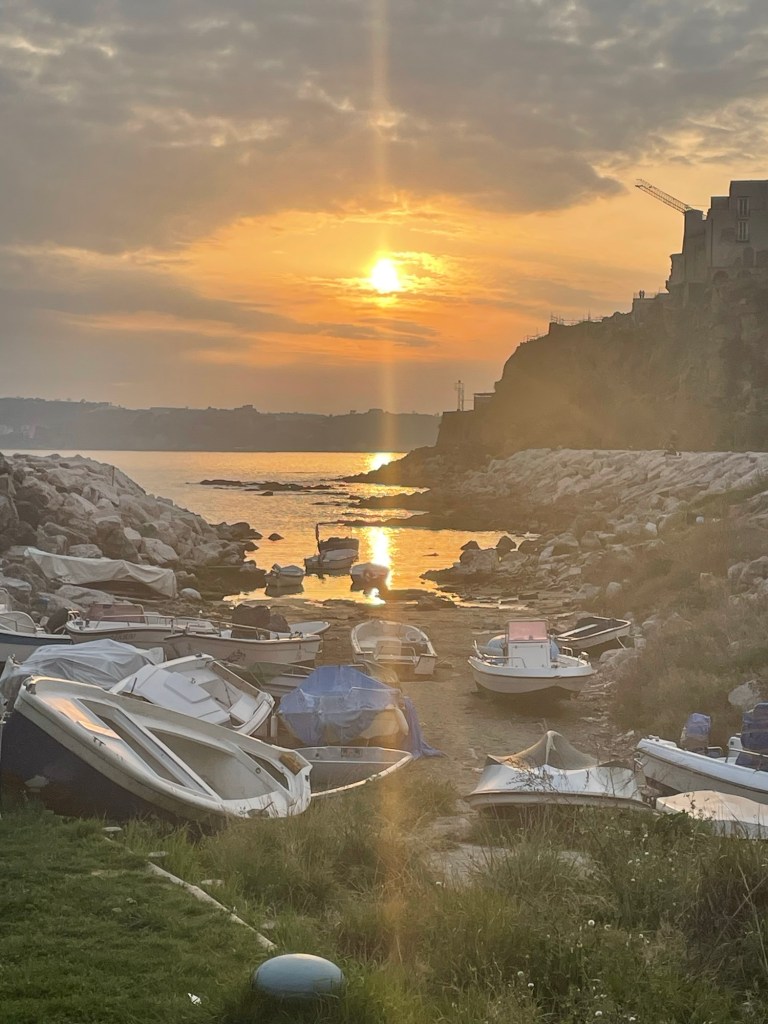 Diego Vitagliano – restaurant overlooking Pozzouli harbor & just amazing pizza. This is the one we will remember. Our 65+server brought us a glass of his best red wine. We thought it would be too dry – Never doubt the Napoli Pizza gods! 😎 the wine was perfect with our pizza.