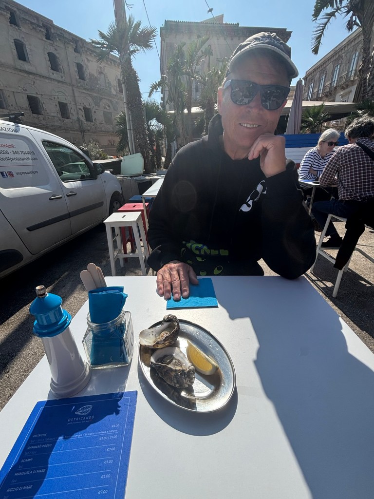 We have arrived in Sicily. Ortigia is our first base for 4 days. OMG – the food. We took a photo of our dinner -an antipasti platter so we can recreate st home!