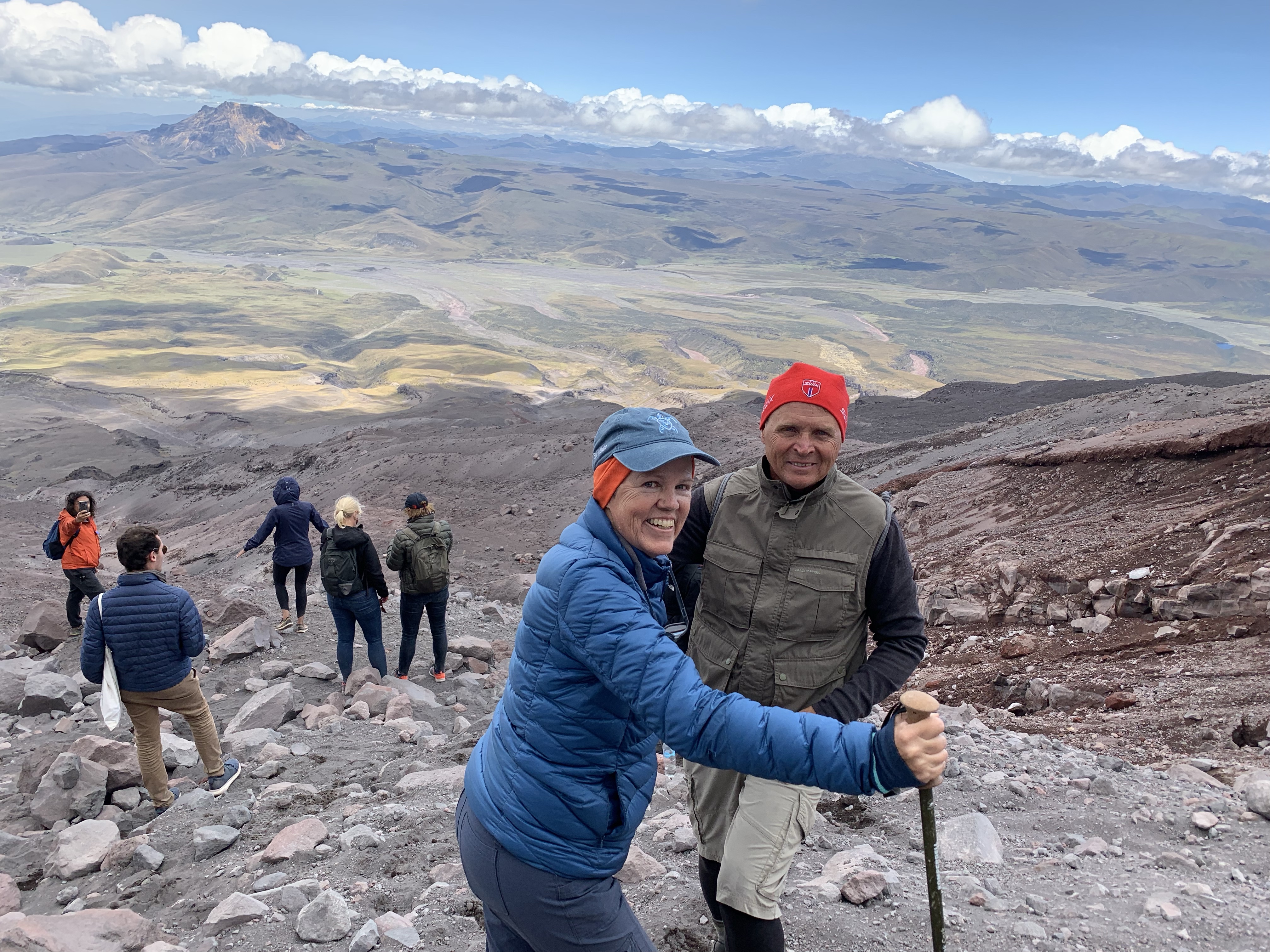 We have loved our three weeks in Ecuador- two weeks studying Spanish in Cuenca and a week exploring Quito. We found the people of Ecuador have a quick smile and a warm & sunny disposition. The most aggressive taxi driver of our trip was encountered – yikes – look out pedestrians- you were in danger. The trip to Cotopaxi was amazing. Fun group on our bus and we met all. France, Germany, & Ecuador were all represented. Our indigenous guide / Paolina was amazing and miraculously guided all but one to the glacier at over 16,500ft. So memorable