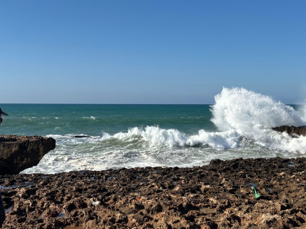 Good Choice. Fabulous oceanfront. Safe- so far😄 . Excellent RIAD (large traditional home turn hotel) with fabulous brekkie. Moroccans eat lots of olives, tomatoes, cheese, yogurt & interesting crepe-like things. Tasty. OJ is ALL fresh squeezed – forever spoiled. And mint tea.